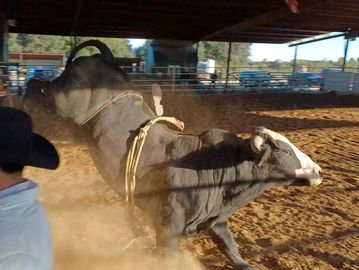 One of our young bulls out of our breediing line. Good jump kick and timing. Perfect for Beginner Riders